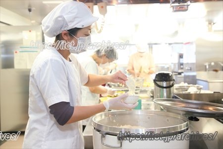 全面ガラス張りの“見える給食室”では、子どもたちが覗いていると下ごしらえしている野菜や果物を見せながら調理をしてくれたり、展示されている献立を見て「今日は何を食べたの?」といった親子の会話のきっかけにもなったりと、新しい施設ならではの良さを実感していただいていると思います。